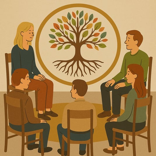 Un cercle humain se forme, un espace de présence et d’écoute s’ouvre.